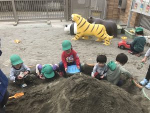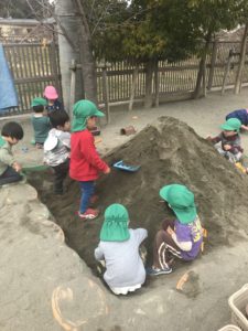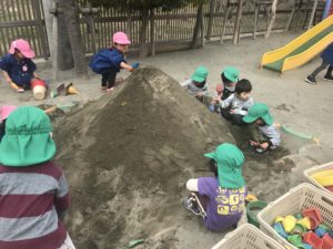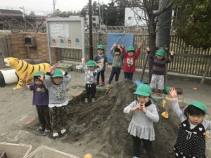 今日は、園長先生と和也先生が大きなお山を作ってくれてみんなで遊びました!