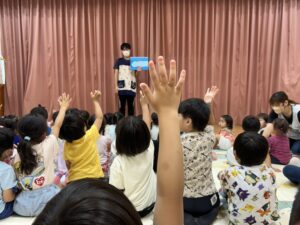 隠れている海の仲間たちを探すクイズでした🦑みんな大盛り上がりでたくさん手をあげて答えていました🦀🦑
