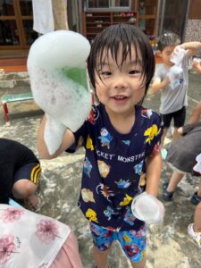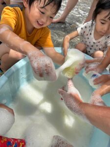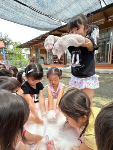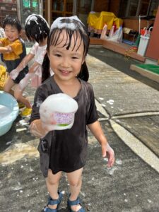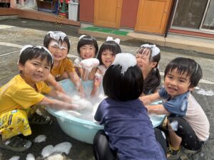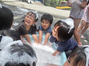 楽しい泡遊び🫧にみんな大喜びでした😊始まったばかりの水遊びですが、毎日楽しい遊びができるように、工夫して暑い夏を乗り切っていきたいと思っています☀️          (小林)