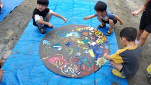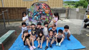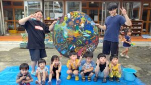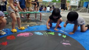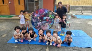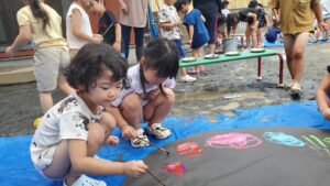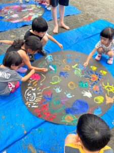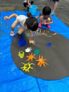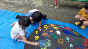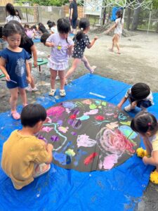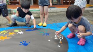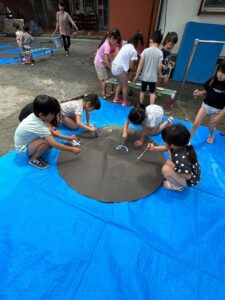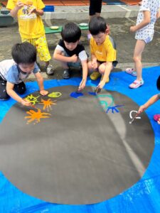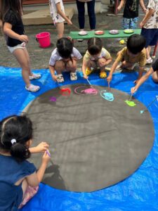 今日の水遊びは絵の具を使って皆で花火を描きました!