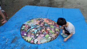 いっぱい色んな色で描いたら、黒かった画用紙が綺麗な色で賑わって来ました!