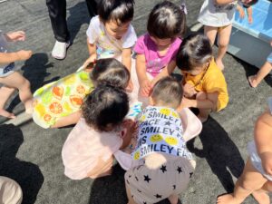 お盆休みもあけて、久しぶりの保育園も元気いっぱいに楽しんでいるうさぎ2歳さん💓