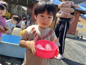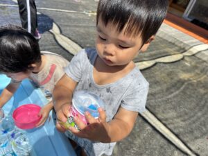 氷ひとつで自分たちで考えながらいろいろな遊び方を楽しめました⭐️
