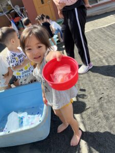 「つめたーい!!」とお友達同士で笑い合っていました💓