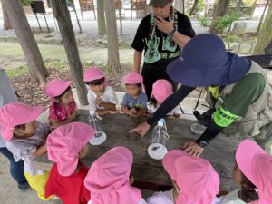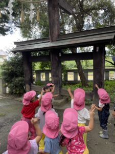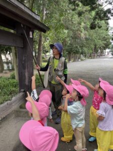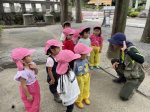 今回のテーマは『セミ❗️』でした。神社へ到着し、初めにみんなでセミの声を聞きました😆