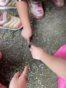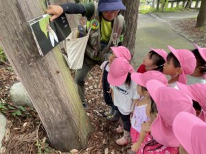大人になったセミを見た後は、セミの抜け殻探しに出発です👍
