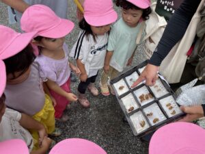 セミがどうやって土の中から出て来たりするのかや、色々な種類の抜け殻を見たりとセミの事を沢山知ることができました😁