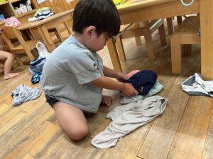 水遊びの期間中に、お着替えが本当に上手になったのでその姿を少しお見せしたいと思います☺️💓