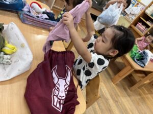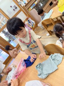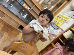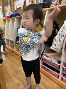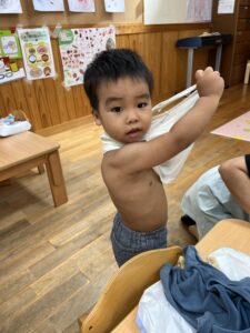服がひっくり返しになっても自分で元に戻せるようになってきました✨
