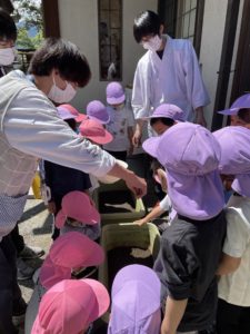 ちょうど神社の方が、お米の苗を植えているところを見学させてもらい、実際にみんなも体験させてもらいました!