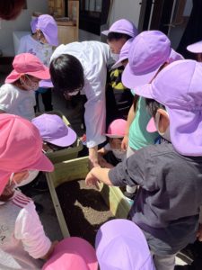 パラパラ〜と土にお米を撒いていきました。