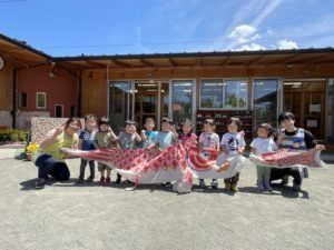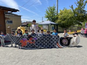 大きな鯉のぼりに負けないよう、たくさん遊んでたくさん食べて大きくなりましょうね😊