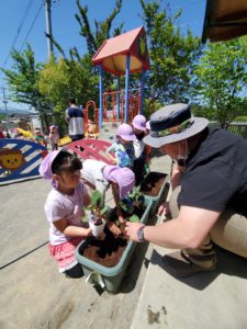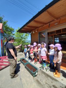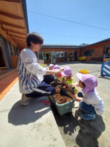 少し暑い天気でしたが、園長先生や和也先生の言う事をしっかり聞いて苗植えが出来ました。