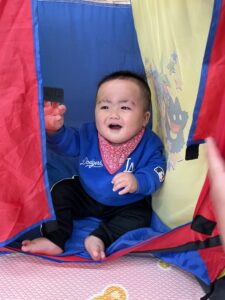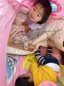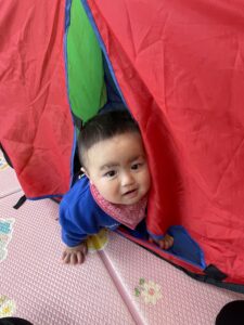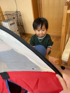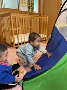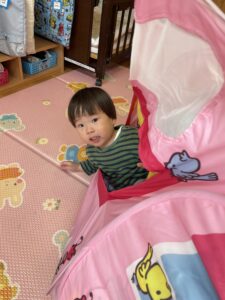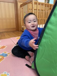テントに一人で入ってみたり、お友達と一緒に入ってみたり😊🌼