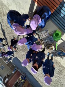 お水も入れたら、みんなで運びます!