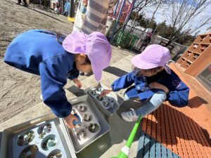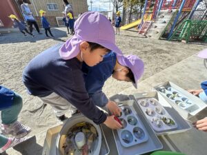 外に出ていた2歳さんも一緒こおりを使って