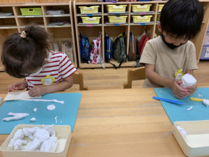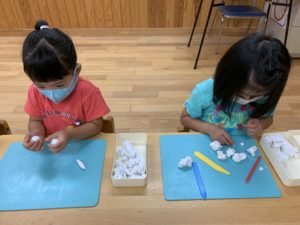 自分で作るものを決めたり、お友達が作った物の作り方を聞いて真似して作ったり…