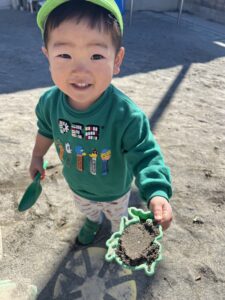 遊ぶ前にみんなでチョコやケーキを作ろうね!とお話しして、作る人〜!と聞くと大きな声で「はーい!」と返事をして作って見せてくれました☺️