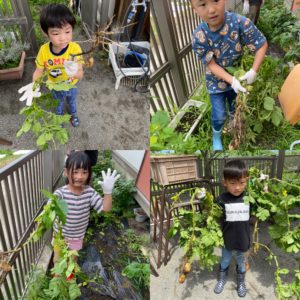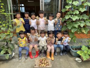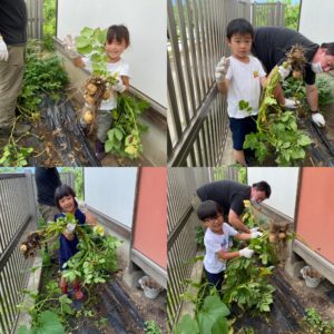園長先生と一緒にツルを引っ張ると、たくさんのじゃがいもが実っていました🥔🥔