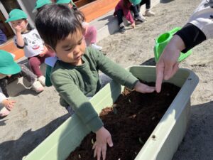 とっても楽しかったようで、その後の戸外遊びの時間も