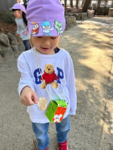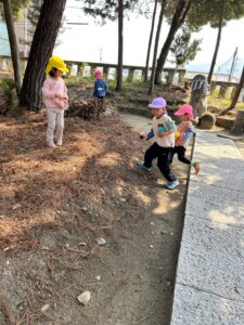 最初は松ぼっくりやドングリを拾って遊んだり、