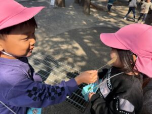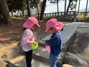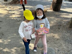 お絵描きをしたり、木の実を探したり楽しく遊ぶことが出来ました。