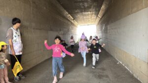 みんなでヤッホーと言ったり、大きな声でトンネルを走ったりしました💪
