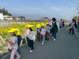 菜の花や梅の花を見ながらみんなで楽しくお散歩しました🌸