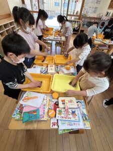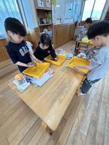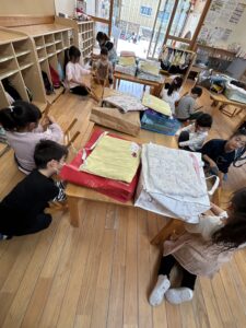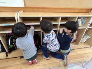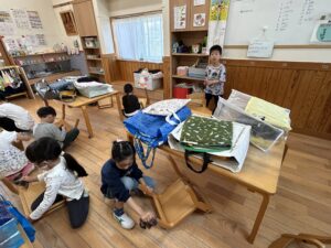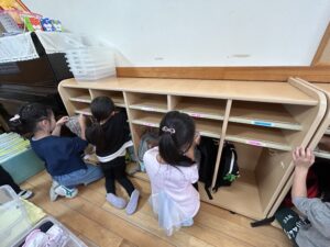 ももぐみさんから使ったお道具箱や、ロッカーを拭いたり