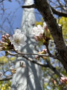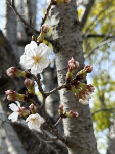 昨日まで蕾だった園庭の桜も
