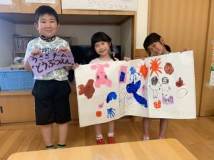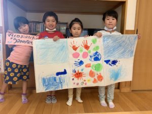絵の具やクレヨンで大きな紙に絵を描きました!