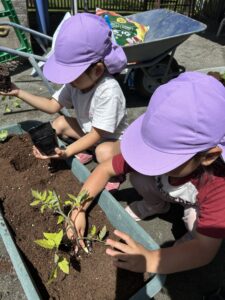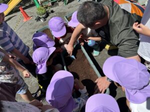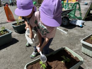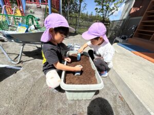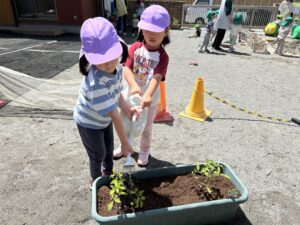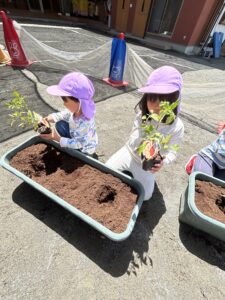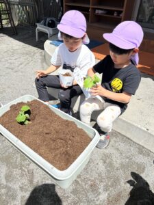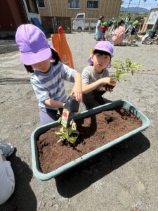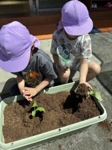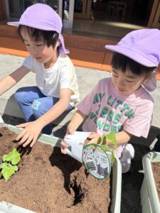 おいしくなぁれ、、と言いながら植えるお友達も♡