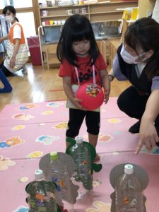 可愛い、アンパンマンのピンで、小さい子も上手にピンを倒せました😆