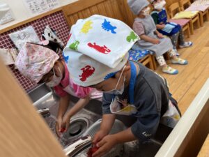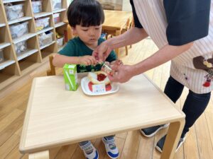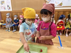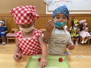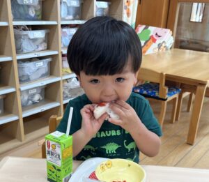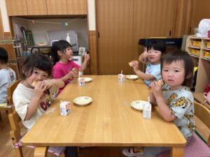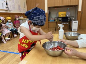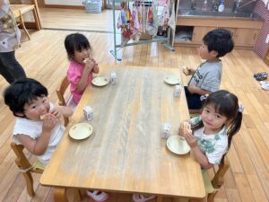 みんなお友達とお話を楽しみながらジャムを塗っていました☺️