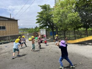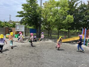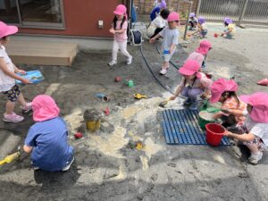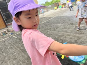 暑い日は水遊びを取り入れたり、水分補給をこまめに取り、熱中症にも気をつけながら楽しく戸外遊びをしていきたいと思います💓(藤巻)