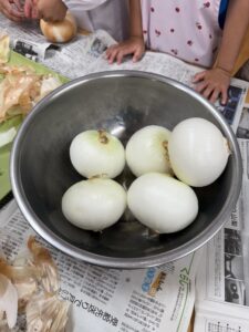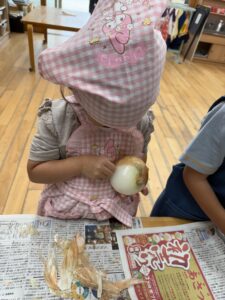 新玉ねぎは採れたてなので皮も柔らかく、初めはみんな剥きにくさを感じていましたが…