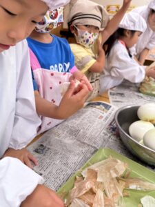 皮を触ってみながら「薄いね!」「柔らかい!」などいろんな感想が聞こえてきました!