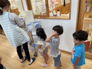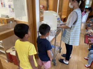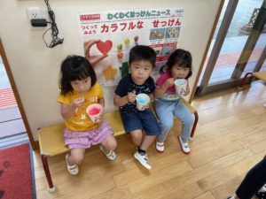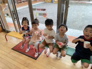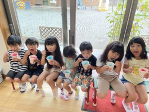 楽しかったお祭りごっこの後のおやつはかき氷🍧でした😊