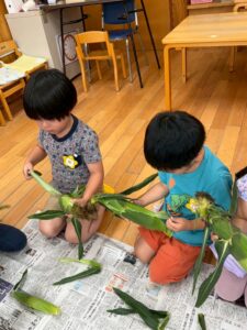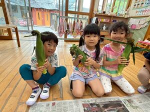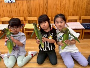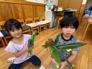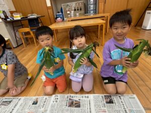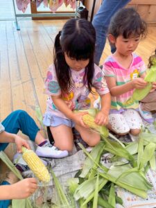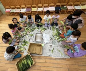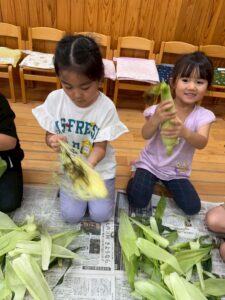 ほし組のみんなと23本のもろこしの皮むきに挑戦しました🌽