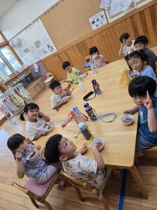 今日は縦割りチームでおやつを食べました!