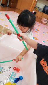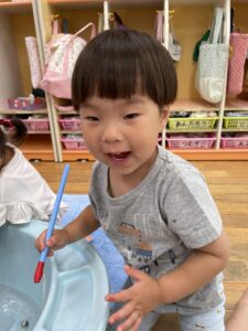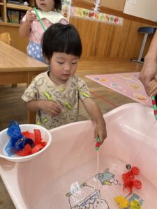 お部屋の中でも水に触れながら楽しく過ごすことができました☺️