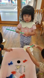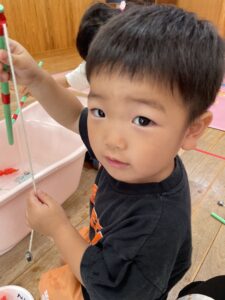 今日はお部屋の中で風船遊びと魚釣りをしました✨