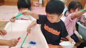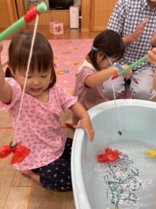 今日はお部屋の中で風船遊びと魚釣りをしました✨