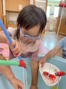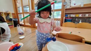 お部屋の中でも水に触れながら楽しく過ごすことができました☺️