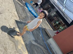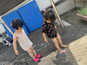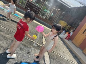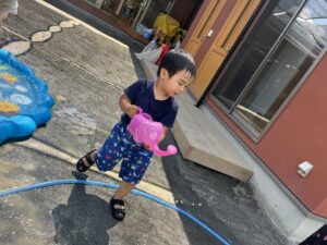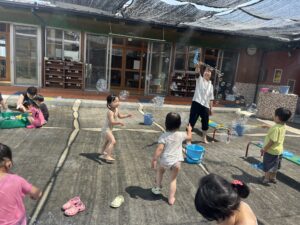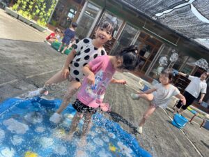暑さ対策のため少し早めに水遊びがスタートしました!