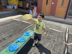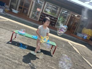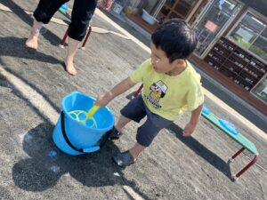 今日はももぐみさんで園庭を貸切できたのでシャボン玉、魚釣り、噴水マットと盛りだくさんで遊べました😊