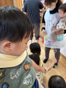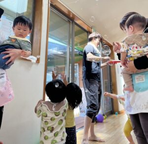 シャボン玉で遊んでいた以上児さんがシャボン玉を見せてくれたよ🪄🫧