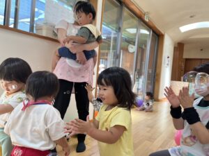 暑い日が続き、外遊びができなくてもお部屋を飛び出して楽しく過ごしています☺️