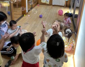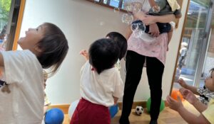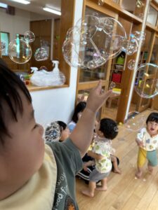 シャボン玉で遊んでいた以上児さんがシャボン玉を見せてくれたよ🪄🫧