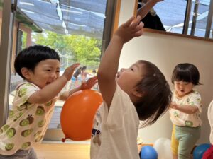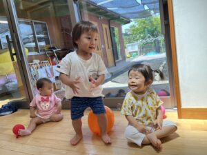 暑い日が続き、外遊びができなくてもお部屋を飛び出して楽しく過ごしています☺️